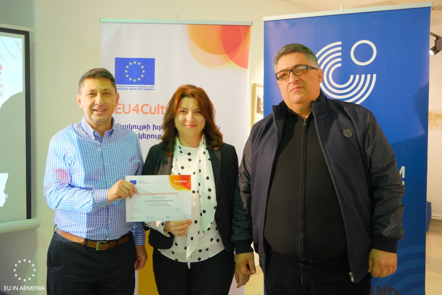 Երեքշաբթի, 16 Նոյեմբերի 2021թ. ՉԱՐԵՆՑԱՎԱՆԻ ՀԱՄԱՅՆՔԱՊԵՏԱՐԱՆԸ ՍՏԱՑԱՎ ՀԵՐԹԱԿԱՆ ԴՐԱՄԱՇՆՈՐՀԸ |  Ընդամենը ժամեր առաջ EU4CULTURE ծրագրի շրջանակներում ԵՄ դեսպան Անդրեա Վիկտորինը Չարենցավան համայնքի ղեկավար Հակոբ Շահգալդյանին հանձնեց Մշակութային զարգացման ռազմավարություն մշակելու նպատակով մինչև 30,000 եվրո դրամաշնորհի հատկացման վկայագիր: Չարենցավան քաղաքի հետ վկայագրեր ստացան նաև Իջևան և Սևան քաղաքները։ ԵՄ դեսպան Անդրեա Վիկտորինը տեղեկացրեց, որ ծրագրի շրջանակներում կտրամադրվի մինչև 300,000 եվրո ֆինանսավորում երեք ռազմավարություններից լավագույնի իրականացման համար` հույս հայտնելով, որ մշակված ռազմավարությունները կարող են օրինակ ծառայել այլ քաղաքների կողմից այդպիսի ռազմավարություններ մշակելու համար և վերջիվերջո նպաստել մշակույթի զարգացման ընդհանուր ռազմավարության մշակմանը ողջ երկրում։ «EU4Culture» քառամյա ծրագիրը ֆինանսավորվում է Եվրոպական միության կողմից ՝ աջակցելու մշակույթի և ստեղծարար ոլորտներին` ուշադրությունը կենտրոնացնելով Արևելյան գործընկերության երկրների մայրաքաղաք չհանդիսացող մեծ և փոքր քաղաքների (ՄՉՔ) ուղղությամբ։ Ծրագրում համայնքապետարանի գործընկերն է Culture for Sustainable Development / Մշակույթը հանուն կայուն զարգացման ՀԿ-ն։ |